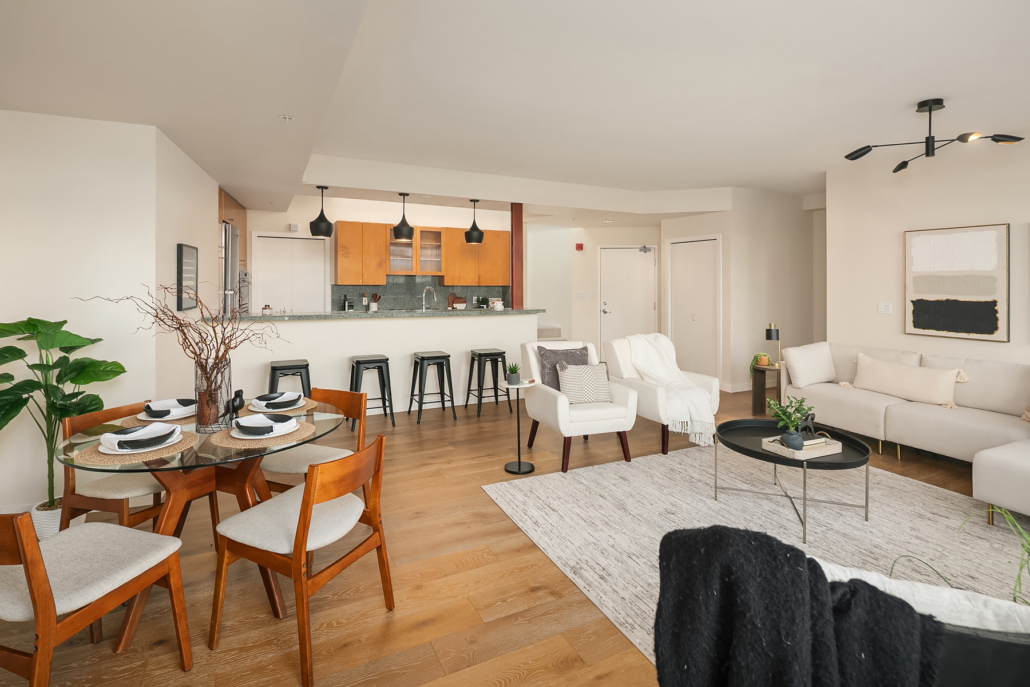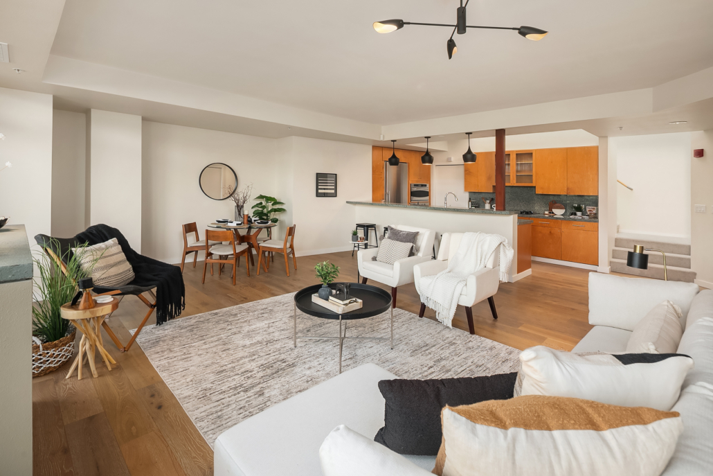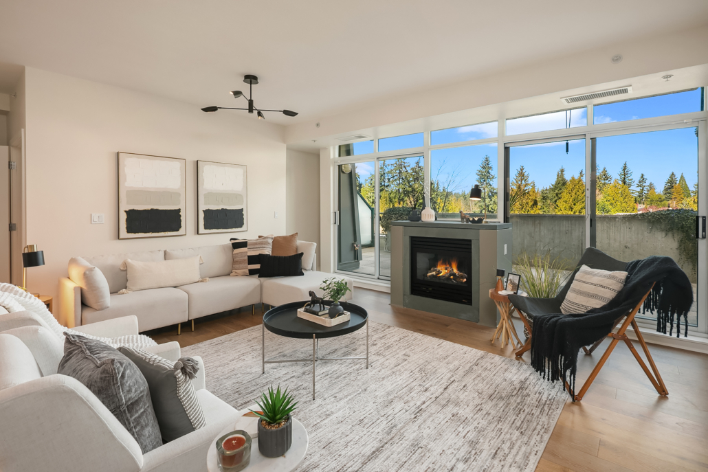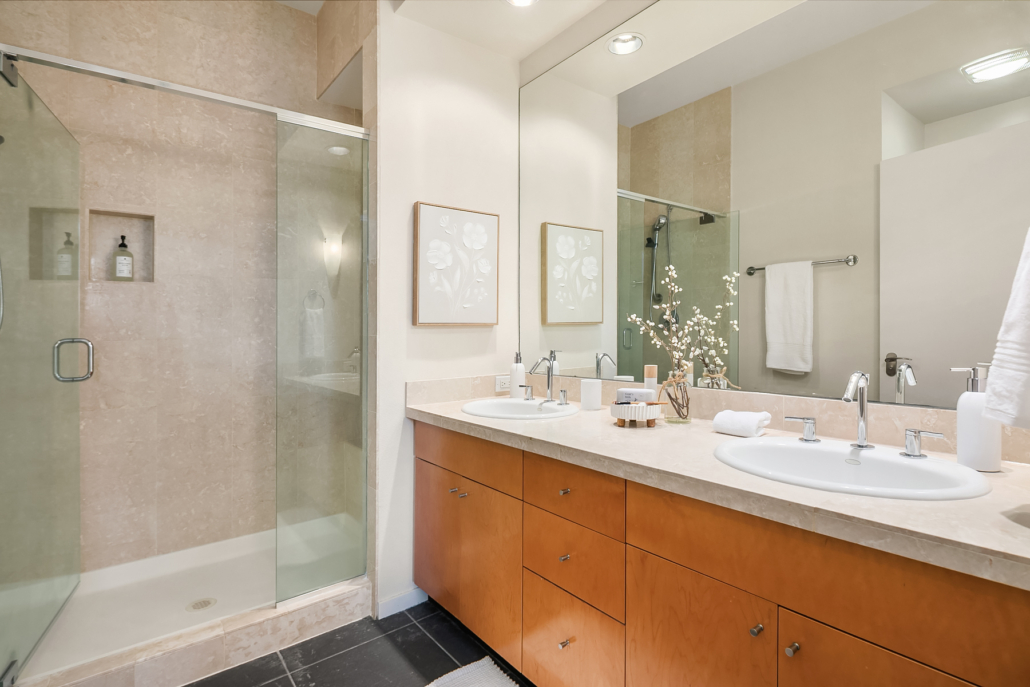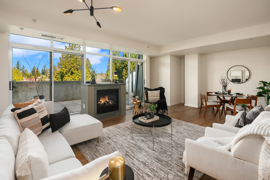 Stunning Palazzo penthouse offering exceptional light, space, and modern comfort. Floor-to-ceiling windows and a dramatic skylight fill the living spaces with abundant natural light. Thoughtfully designed Kitchen with a gas cooktop, built-in oven, granite countertops, and a walk-in pantry. Open concept living w gas fireplace/opens to an expansive private terrace (approx 400 sq ft) perfect for seamless indoor-outdoor living and entertaining. Both bedrooms are situated on the upper level, each offering a private en-suite bathroom, ample closet space and its own balcony. Secure garage with two parking spaces and extra storage. Premium amenities w a full-time concierge, business center, and fitness center. No rental cap. Walking distance to shops, parks, restaurants and everything Downtown Bellevue has to offer!